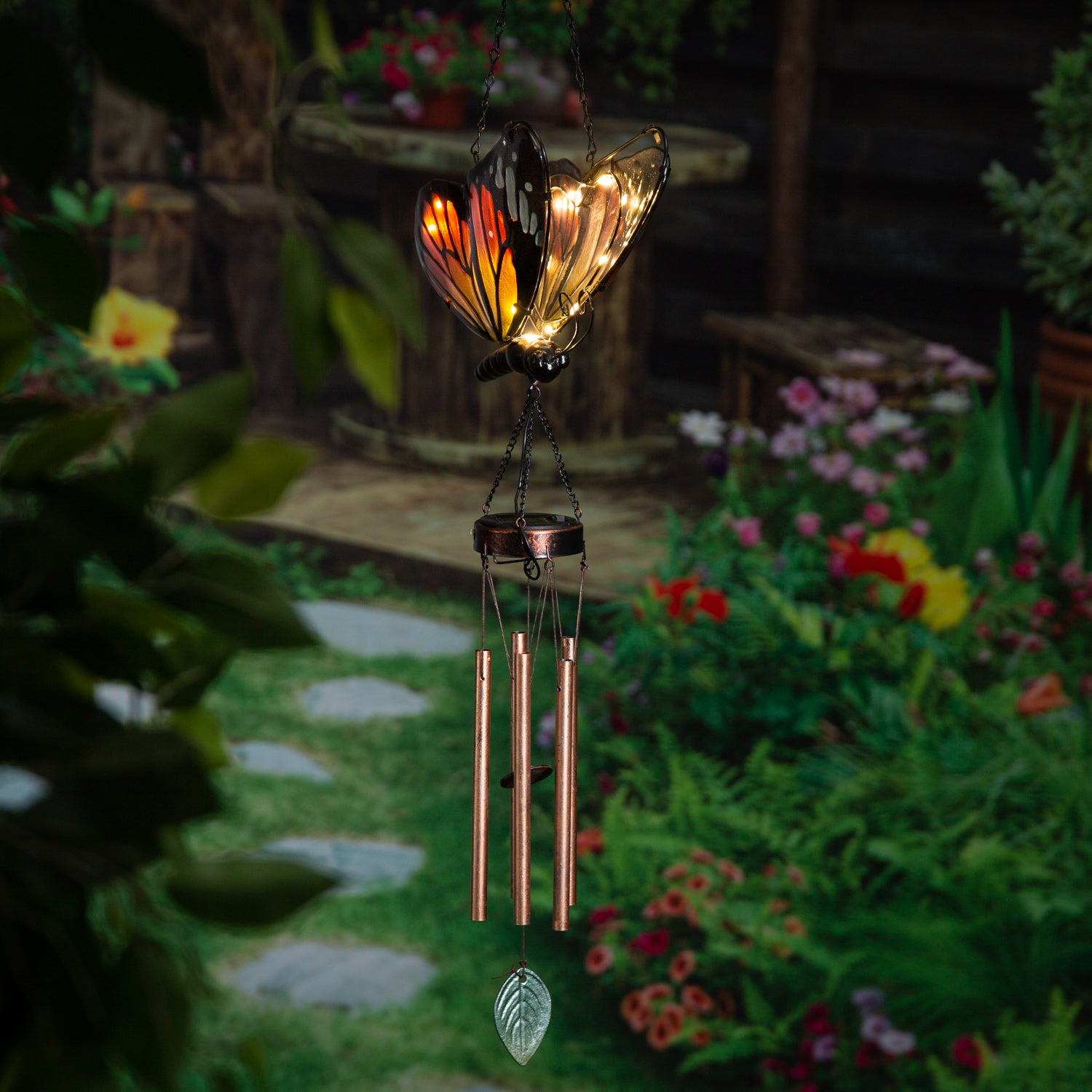 Solar Glass Monarch Butterfly Wind Chime