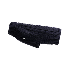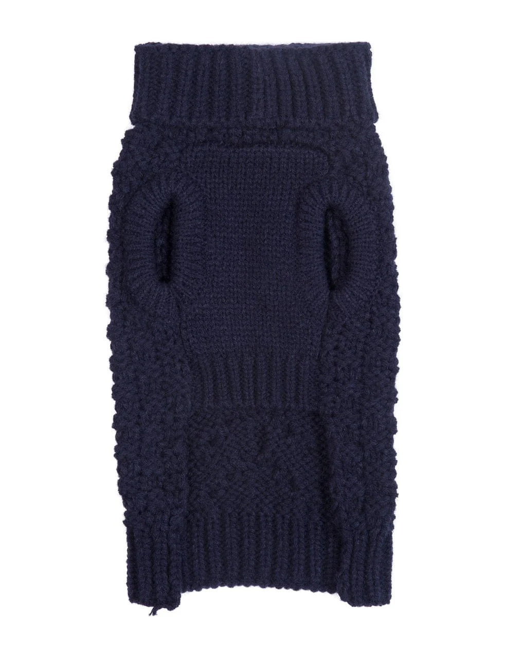 This chunky sweater is warm to the touch and stitched with detail. In upscale style, the high society circles of the dog park will welcome your pup with wagging tails and dripping saliva (in a classy way, of course).