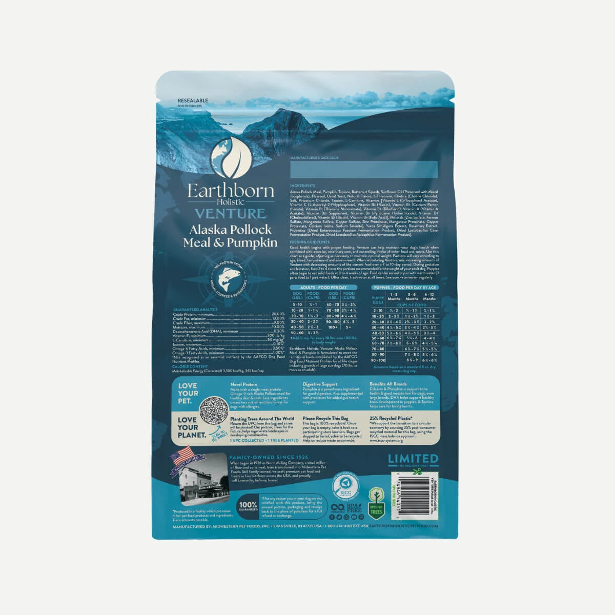 Earthborn Holistic Venture - All Breeds, Adult Dog Alaska Pollock Meal & Pumpkin Recipe Dry Dog Food