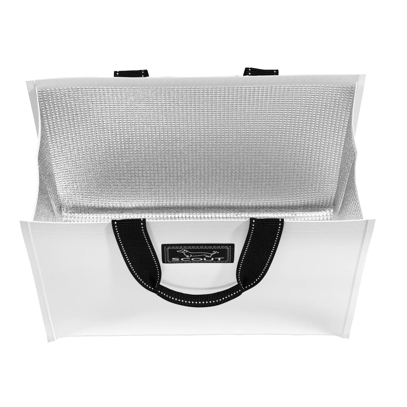 RUNS HOT AND COLD. Keep your milk cold or your rotisserie chicken warm with this durable, insulated market tote with a snug velcro closure. The lightweight fabric and slim profile make it easy to carry from checkout to car to counter.