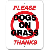 Put a smile on everyones face with Noble Beasts Graphics 9 inch x 12 inch Please No Dogs On Grass Thanks aluminum sign. This durable sign can be used for both outdoor and indoor use.