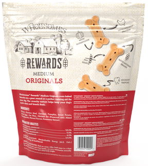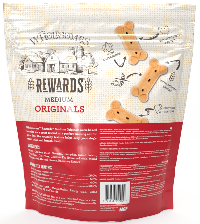 Reward your dog with new Wholesomes Medium Golden Biscuit Dog Treats. Made with Ancient Grains for heart health, and superfoods like pumpkin, oatmeal, sweet potato, and fiber for a fit lifestyle. Pea free, and a crunchy texture to help improve dental health, each bite will feel like a day in the park for your dog.